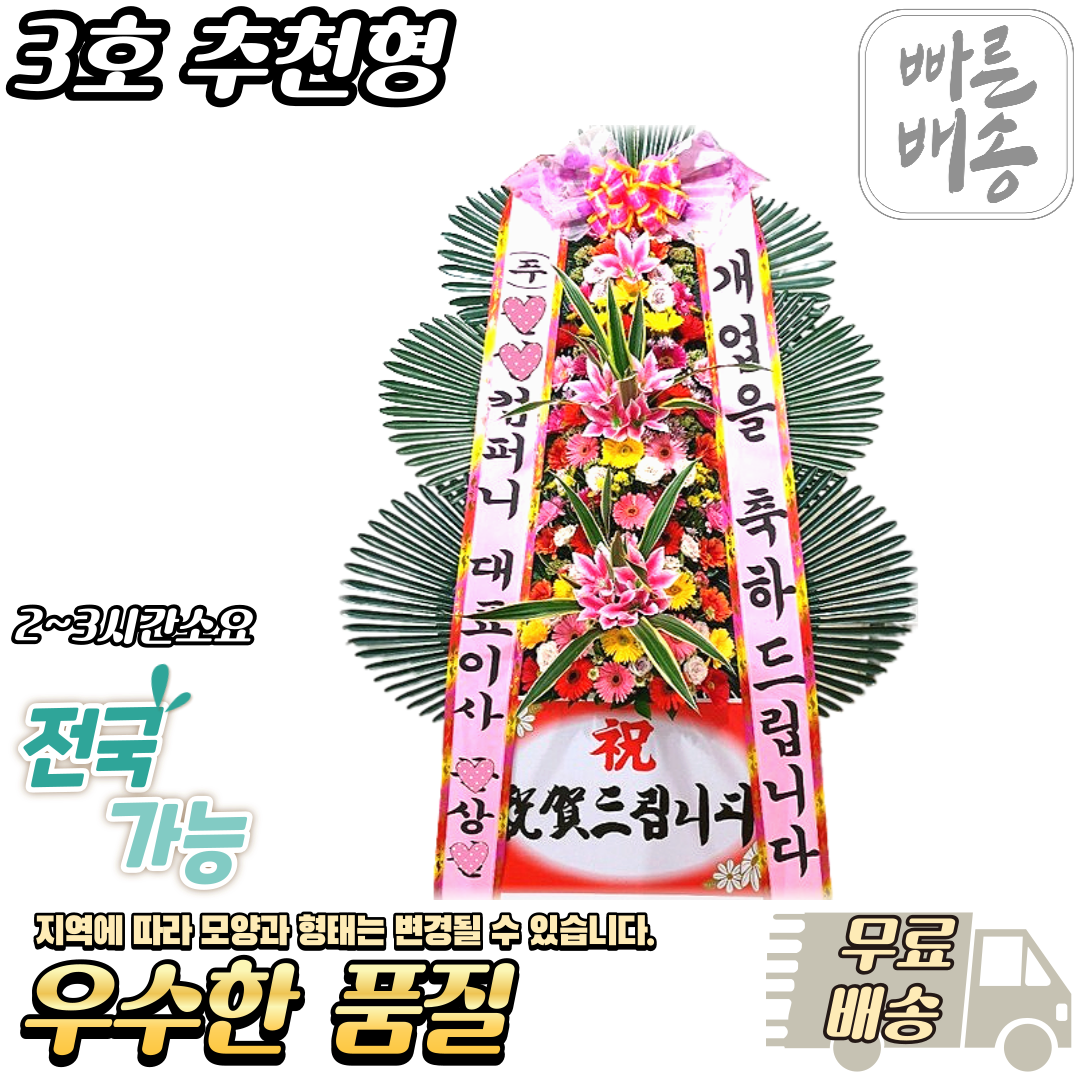 - (3호/추천형) 3단 축하화환(개업화환/결혼화환, 행사.준공.개원.개소-추천꽃집)